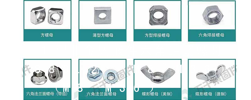 1型非金屬嵌件六角鎖緊螺母細牙GB/T 889.2—2000;蓋形螺母GB 923—88;1型六角螺母GB/T 6170—2000。1型六角螺母細牙GB/T 6171—2000;六角薄螺母GB/T 6172.1—2000;非金屬嵌件六角鎖緊薄螺母GB/T 6072.2—