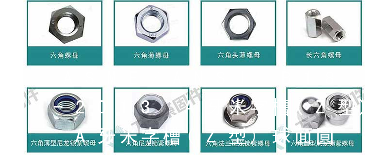 T型槽螺母 T-slot nuts 單頭螺柱 Single end studs 地腳螺栓 Masonry bolts 帶槽圓螺母 Slotted round nuts 端面帶孔圓螺母 Round nuts with drilled holes in one face 開槽平端緊定螺釘 Slotted set screws with flat