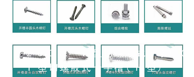 1)開槽普通螺釘多用于較小零件的連接。它有盤頭螺釘、圓柱頭螺釘、半沉頭螺釘和沉頭螺釘。盤頭螺釘和圓柱頭螺釘的釘頭強度較高,瑁在普通的部件連接上;半沉頭螺釘的頭部呈弧形,安裝后它的頂端略外露,且美觀光滑,一般用 Pozi 米制槽 Phill 十字槽 Serra-tion 墊下帶花 Flower Head 開花頭 6-bobes recess 內梅花 Piston bolt 活塞螺釘 Winding bolt 線圈螺釘 Hexagon head bolts-full thread 六角頭螺栓 全螺紋 Carriage bolt 馬車螺栓 Square head bolt