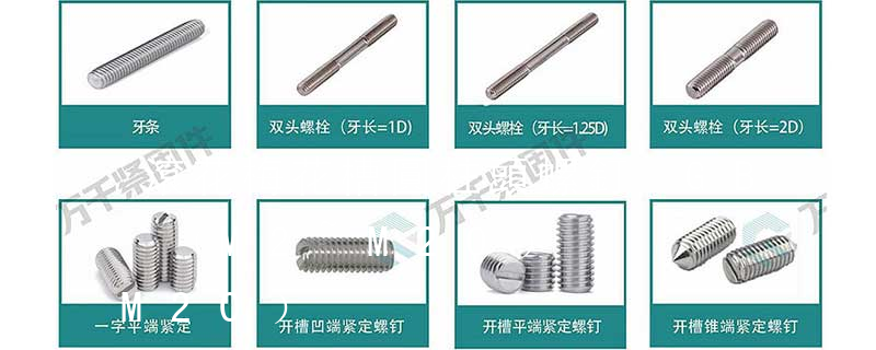 GB/T 6191-1986 內六角花形圓柱頭螺釘 8.8級。已廢止,替代標準:GB/T 2671.2-2004 內六角花形圓柱頭螺釘。規定了螺紋規格為M2~M20的,性能等級為8.8、9.8、10.9、12.9、A2-70、A3-70、A4-70、A5-70、CU 十字槽盤頭機絲牙螺釘 采用的是GB818 Cross recessed pan head screws十字槽傘頭機絲牙螺釘采用的是GB67 Cross recessed truss head screw十字槽傘頭三角牙螺釘采用的是GB867 Cross recessed truss head triangular screw十字槽沉頭機絲